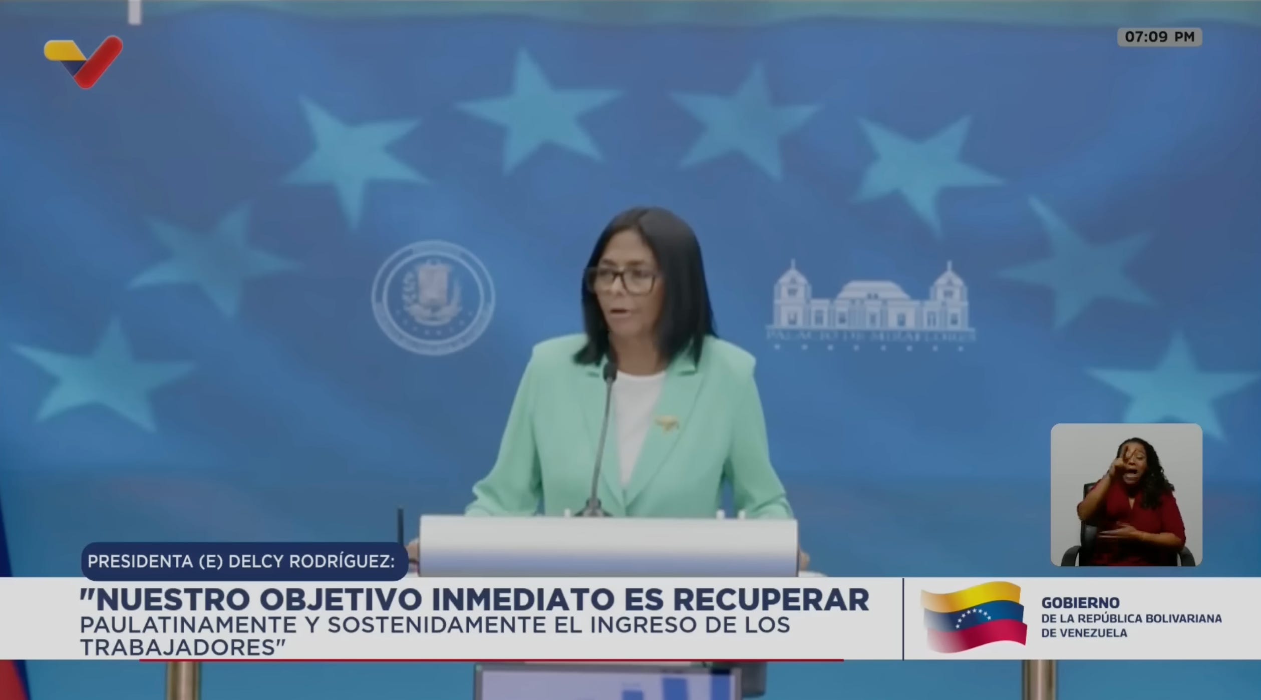 Rodríguez se refirió al recuento del colapso económico, la caída del PIB, la hiperinflación, la pérdida del poder adquisitivo y la migración masiva. Luego, la explicación de lo anterior, lo que el régimen denomina “el bloqueo”. Finalmente, cerró con una promesa: una recuperación sostenida del país, de manera responsable, que ya estaría en marcha.